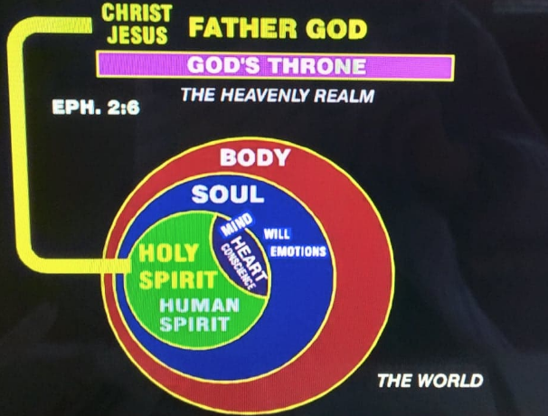 Sjelen er alt som ikke er ånd eller kropp. Kroppen med dens sanser og emosjoner er vårt jordiske telt som vi trenger for å bo på jorden (jfr. 2 Kor 5:1). Ånden er vår personlighet, skapt i Guds bilde og trenger å bli forløst. Sjelen er primært de mentale funksjoner; minne, intellekt og flere andre mentale prosesser. Derfor er det så viktig at sinnet fornyes i sannheten. Men også følelser og viljen ligger inn under sjelen. Bryt barrieren mellom sjel og ånd!